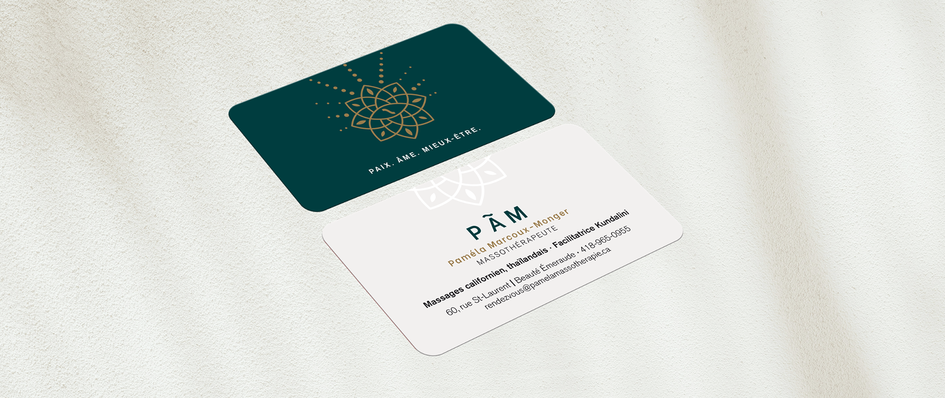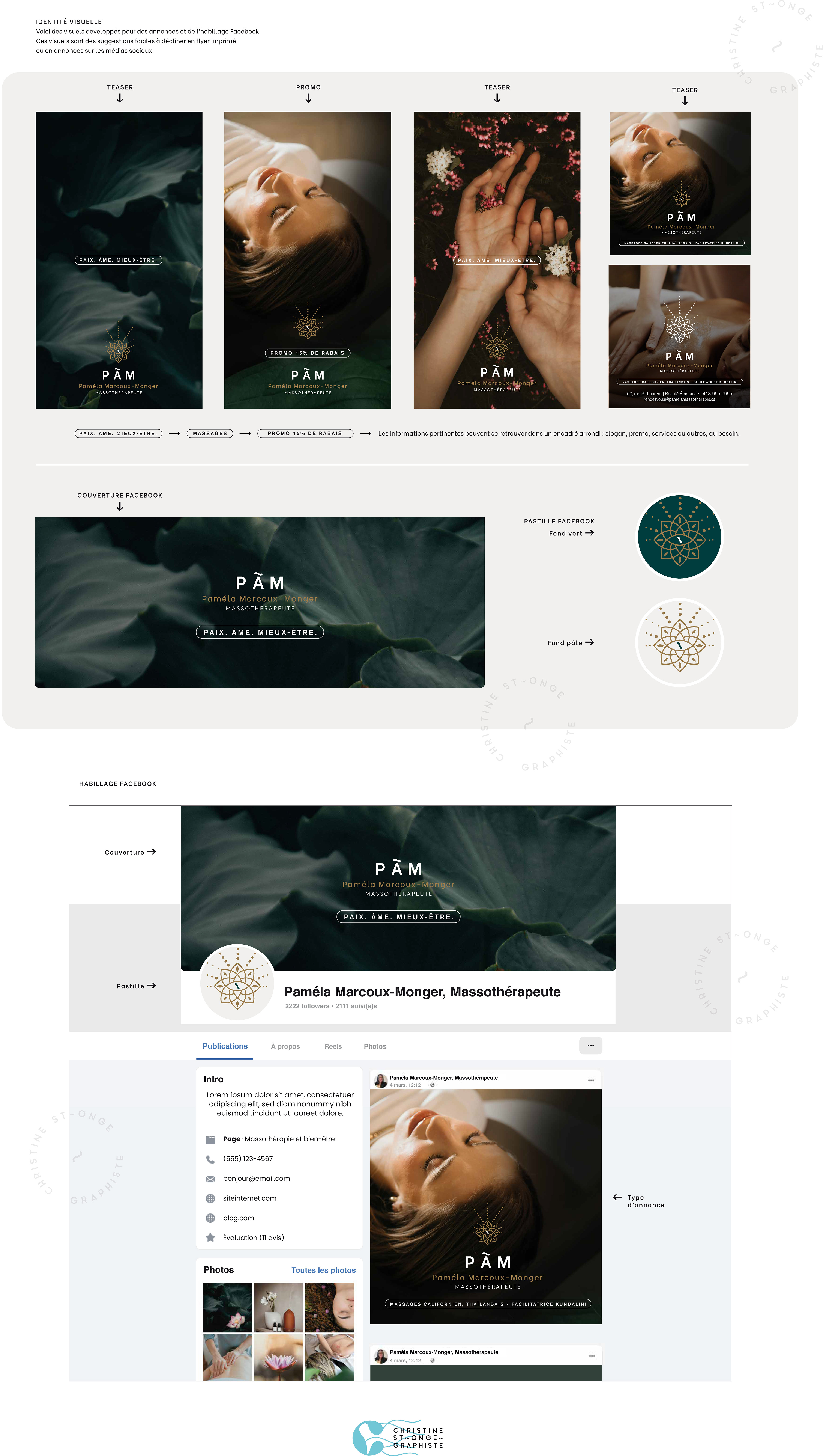 Signature graphique pour Paméla Marcoux-Monger, Massothérapeuthe PAM - PAIX. ÂME et MIEUX-ÊTRE